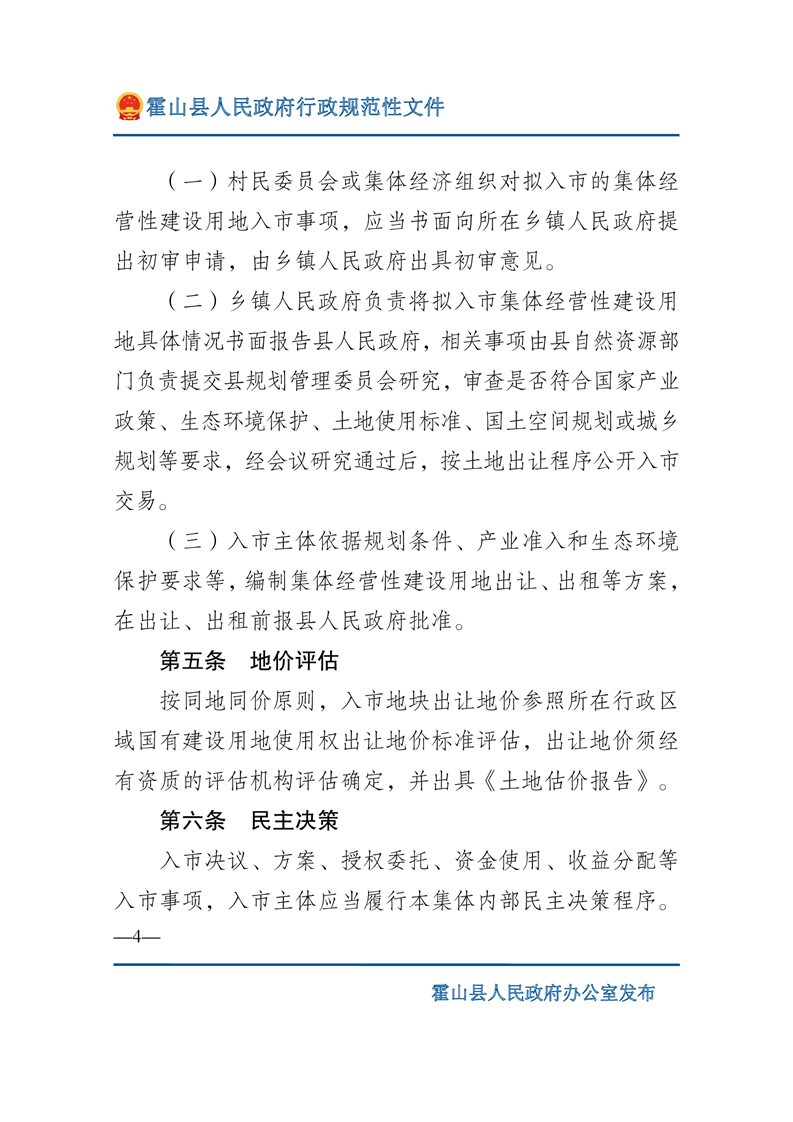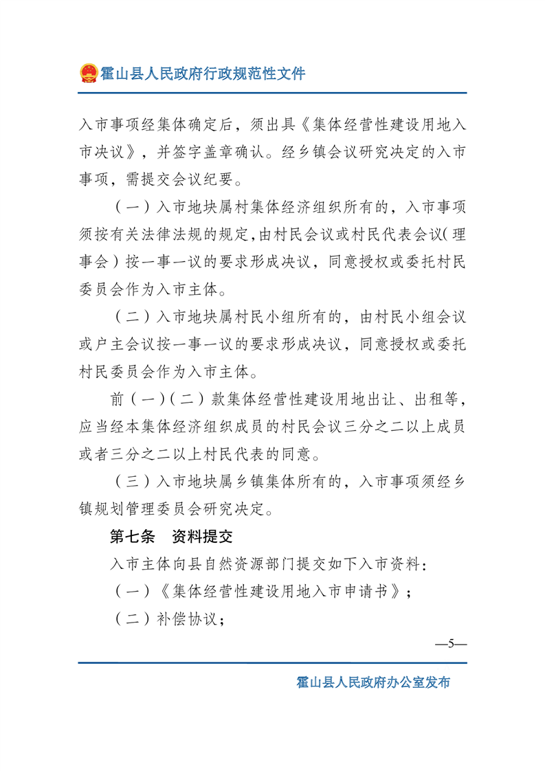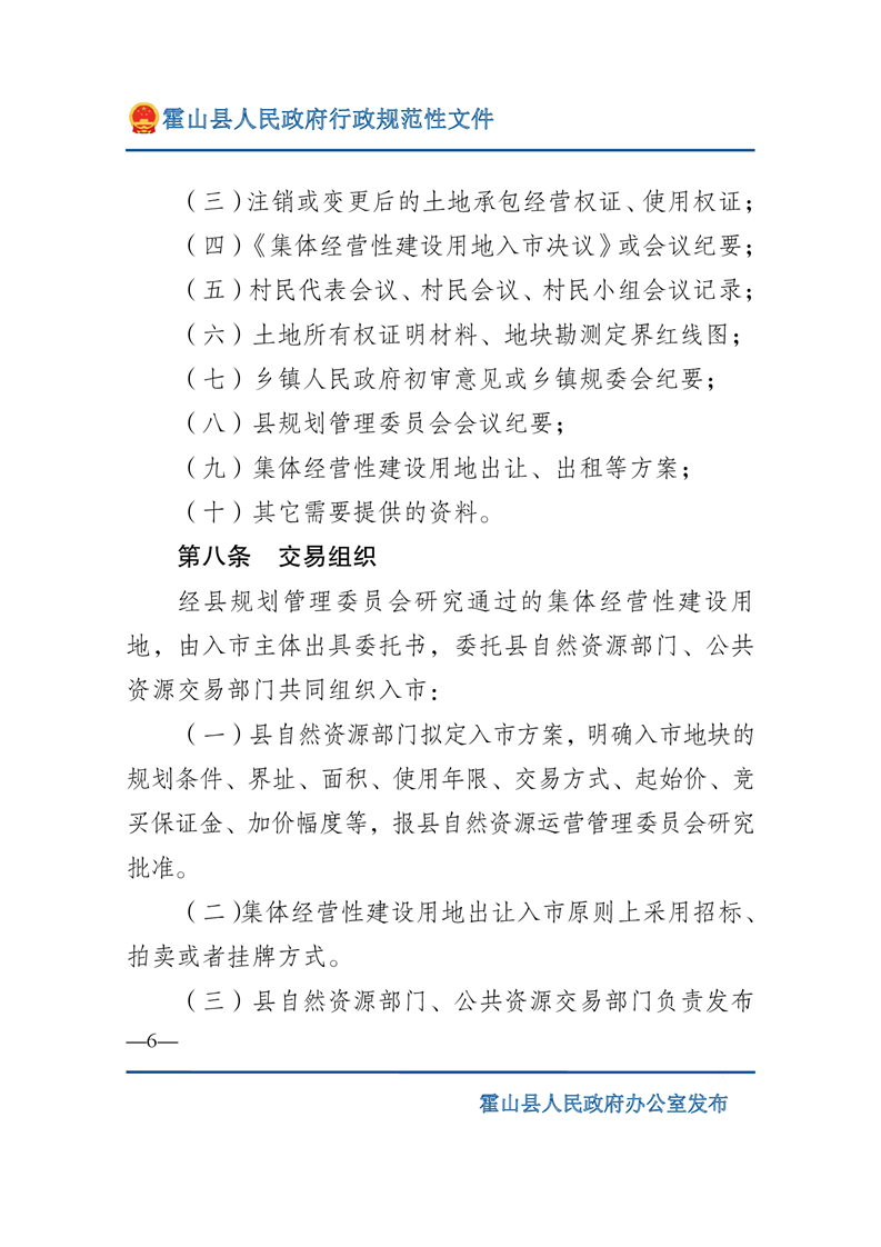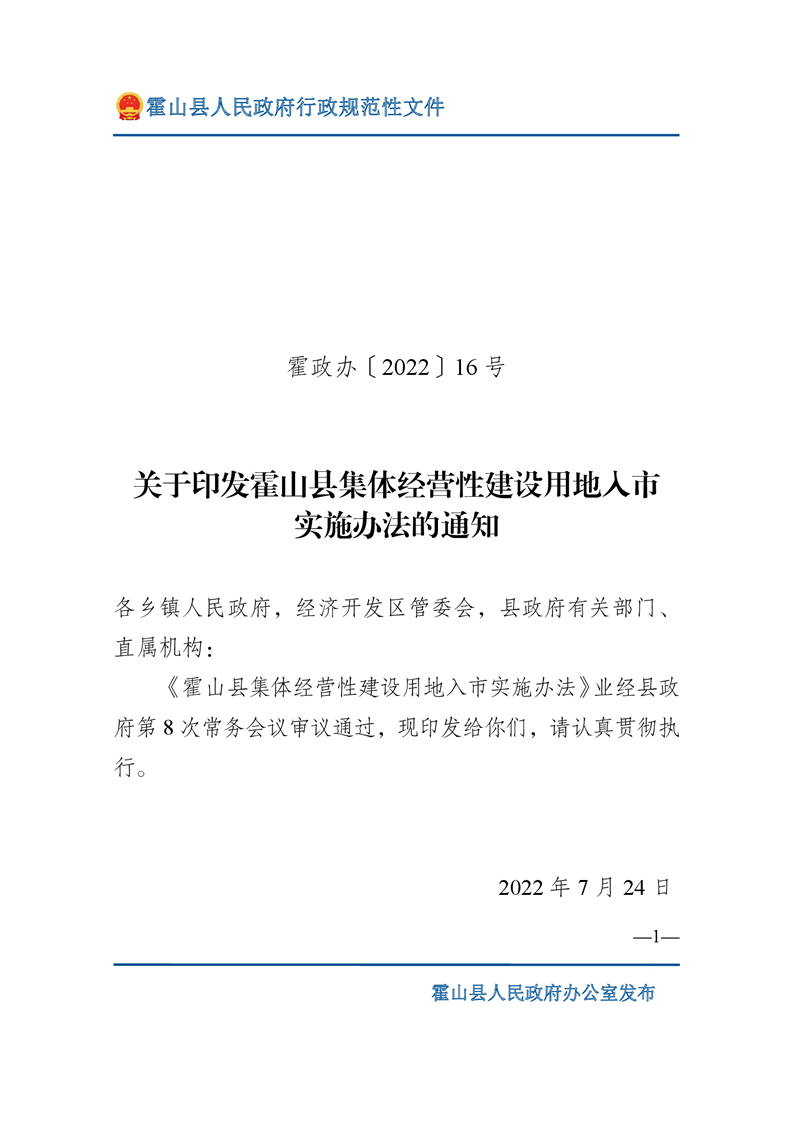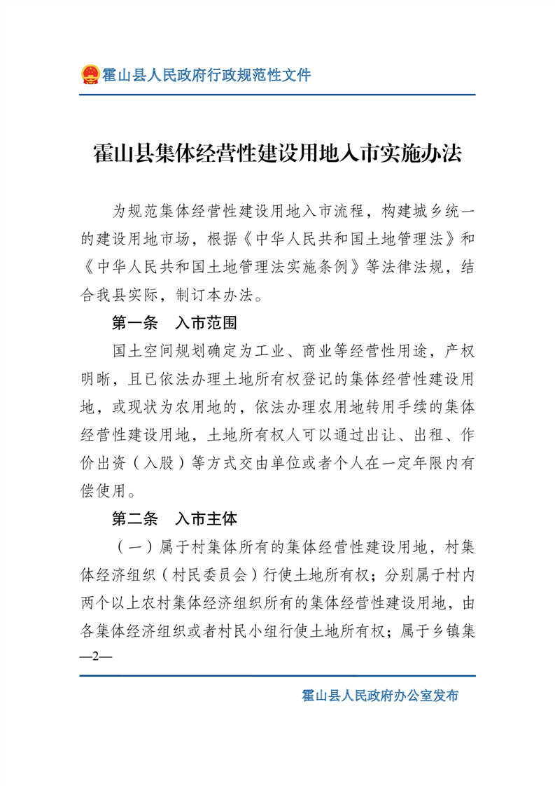 新修订的《中华人民共和国土地管理法》从2020年1月1日施行,规定只有军事外交、能源交通、公共事业等6种符合公共利益需要的情形才可以依法征收农民集体土地,同时提出 “土地利用总体规划、城乡规划确定为工业、商业等经营性用途,并经依法登记的集体经营性建设用地,土地所有权人可以通过出让、出租等方式交由单位或者个人使用”。目的是推进我县集体经营性建设用地入市工作,规范全县集体经营性建设用地入市流程,构建城乡统一的建设用地市场,更好地保障全县招商引资等项目尽快落地。为进一步支持全县乡村振兴发展,保障项目发展用地需求,县政府2022年第8次常务会议审议通过《365bet娱乐场下载_365bet手机注册_体育外围app网站365集体经营性建设用地入市实施办法》修订草案,印发了《关于印发365bet娱乐场下载_365bet手机注册_体育外围app网站365集体经营性建设用地入市实施办法的通知》(霍政办〔2022〕16号)(以下简称《实施办法》)。