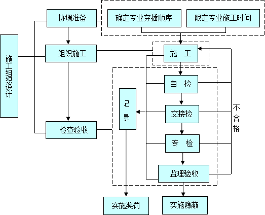 接交接检通知后,由工序班组长组织人员对即将被隐蔽覆盖的上一工序的质量进行监督检查,确认不存在影响本工序施工的不合格质量因素,通知专检。