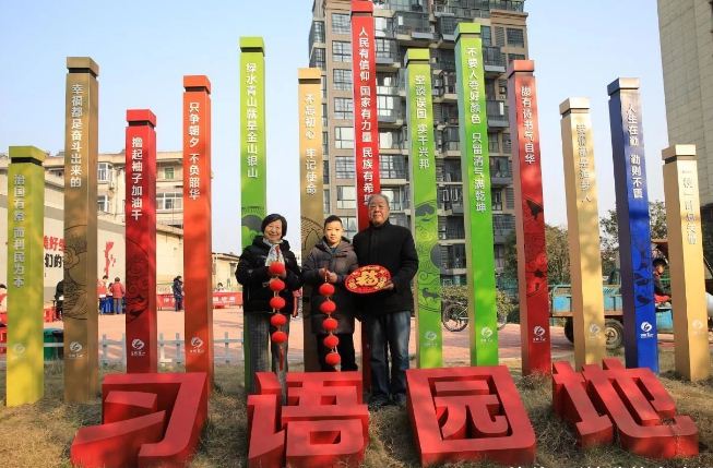 在“口袋公园”习语园地门口,“六安好人”李芳兰一路小跑,带着家人一起来拍全家福。“这个小公园,我是看着它建好的,就在我们小区门口,居民都喜欢到这边锻炼健身,孩子们还可以看看共享书屋的图书,社区也经常在这里举办活动,今天在这里拍个全家福,真的很有纪念意义!”拍完照片,李芳兰由衷地感叹。