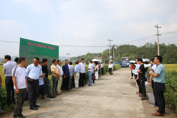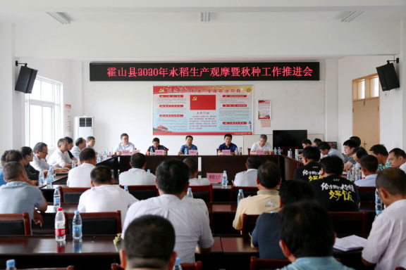 9月11日,霍山县2020年水稻生产观摩暨秋种工作推进会在下符桥镇沈家畈村召开。会议由县农业技术推广中心主任陆保国主持,县农业农村局龚耀宗局长、县农林水系统党委书记朱少应、下符桥镇党委书记程业清、下符桥镇人大主席庞文刚到会指导并做了相关工作安排。全县16个乡镇农业综合服务站常务副站长,农业技术推广中心作物栽培站、植物保护站、土壤肥料站全体技术人员,全县种植水稻面积100亩以上的大户共50余人参加了会议。