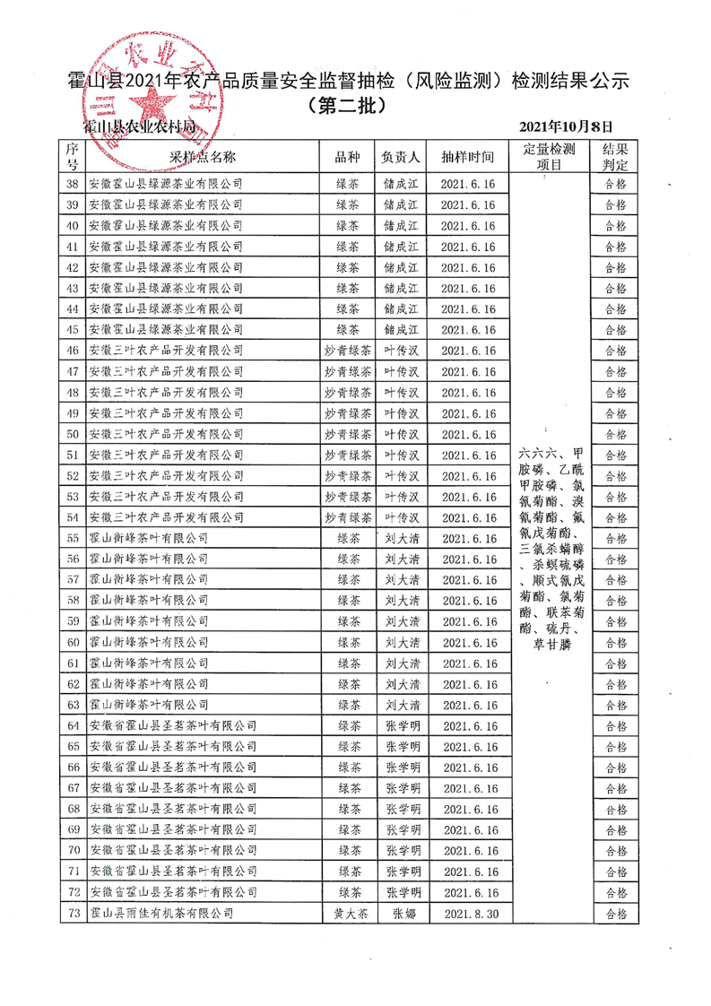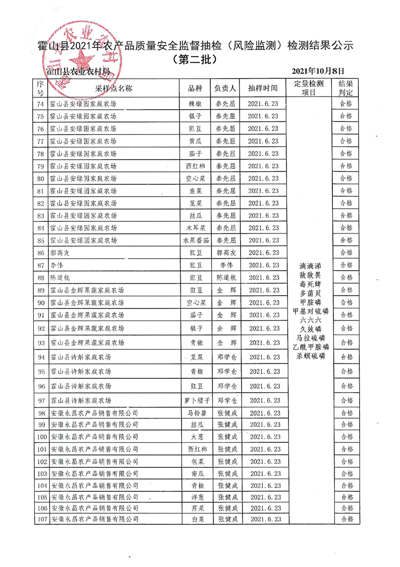【保粮食安全】365bet娱乐场下载_365bet手机注册_体育外围app网站3652021年农产品质量安全监督抽检(风险监测)检测结果公示(第二批)