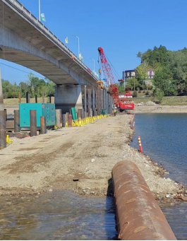 “目前我们已完成河床施工便道,钢管桩初打201根,振动锤复打127根,标准支架9组。接下来我们在当好第一责任人的前提下,认定目标,充分利用河道放水的这段时期,在确保安全和工程质量的条件下,想尽办法,加快推进下部支撑体系施工进度,全力以赴保证项目建设按节点计划完成。”项目现场办主任蔡华军说道。